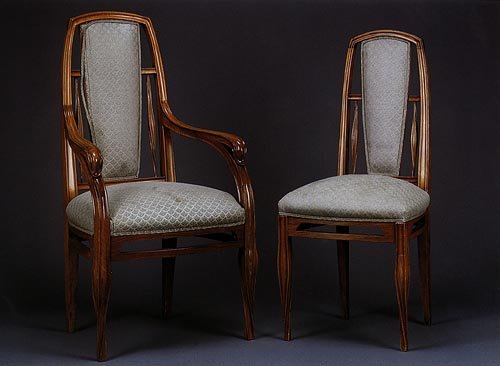 | Set Of Eight Art Nouveau Carved Walnut Dining Chairs